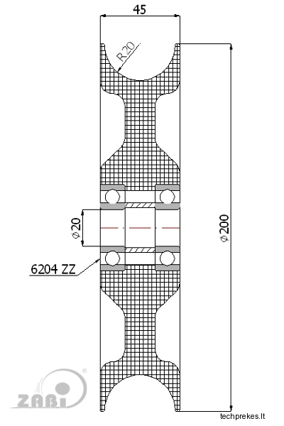 200 mm diametro plastikinis ratukas su guoliu (40 mm trosui)