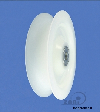 Plastikinis ratukas su guoliu, skirtas trosui, lynui, virvei