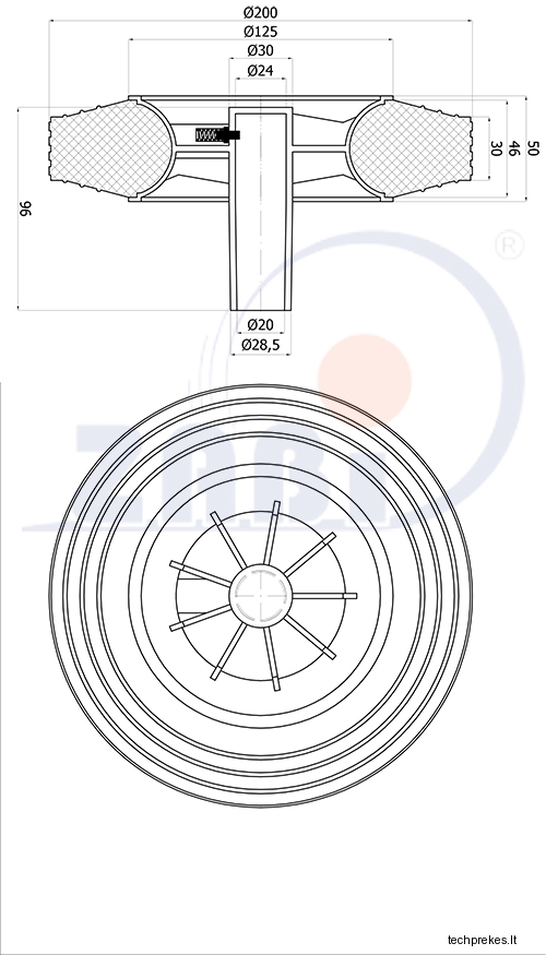 200 mm ratukas šiukšlių konteineriui (100 kg)