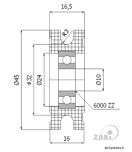 45 mm diametro plastikinis ratukas su guoliu (6 mm trosui)