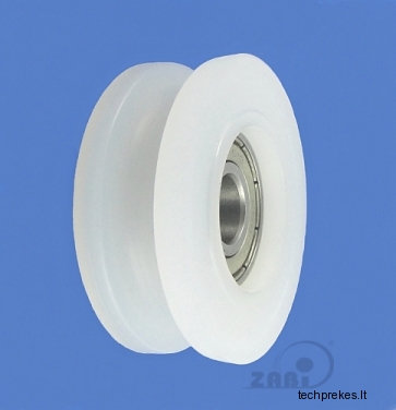 ↵Plastikinis ratukas su guoliu, skirtas trosui, lynui, virvei