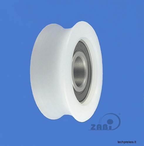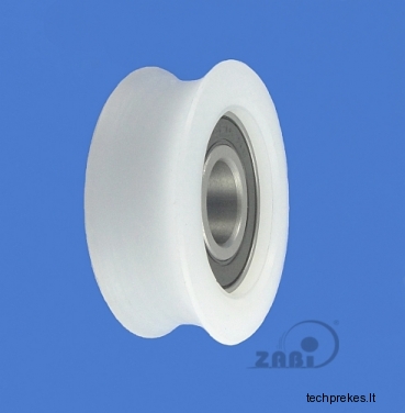 Plastikinis ratukas su guoliu, skirtas trosui, lynui, virvei