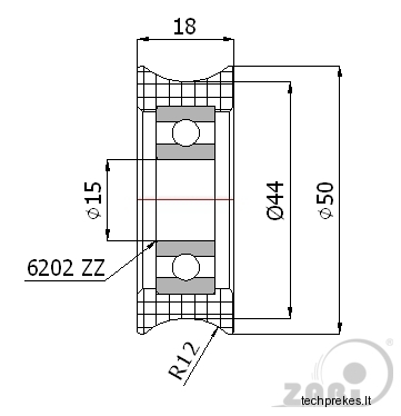 50 mm diametro plastikinis ratukas su guoliu (24 mm trosui)
