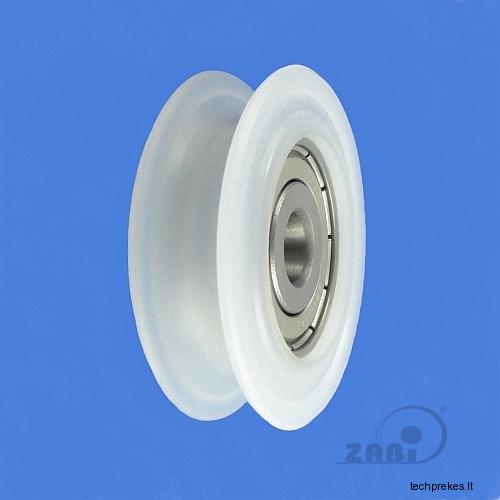 Plastikinis ratukas su guoliu, skirtas trosui, lynui, virvei