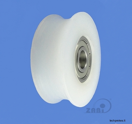 Plastikinis ratukas su guoliu, skirtas trosui, lynui, virvei