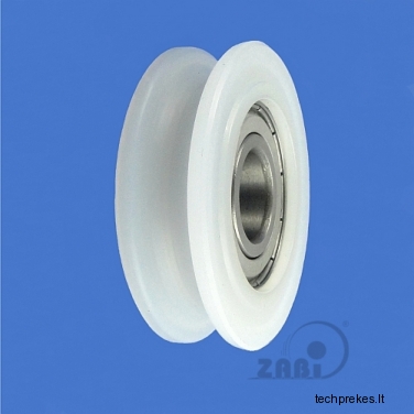 Plastikinis ratukas su guoliu, skirtas trosui, lynui, virvei