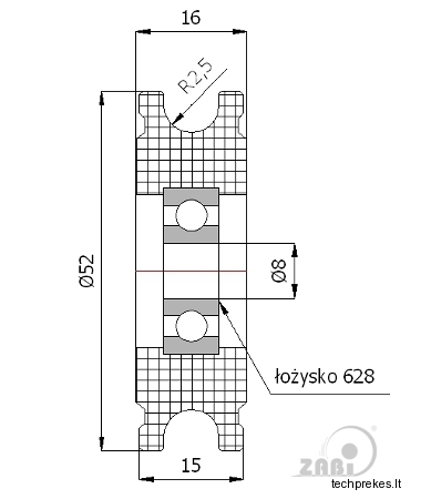 52 mm diametro plastikinis ratukas su guoliu (5 mm trosui)
