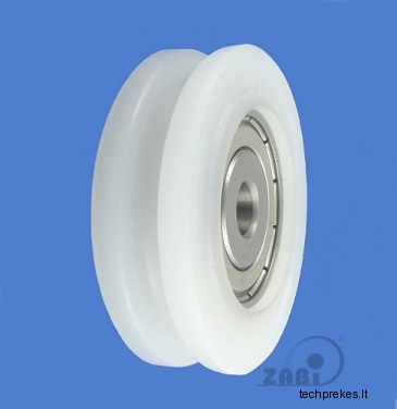 Plastikinis ratukas su guoliu, skirtas trosui, lynui, virvei