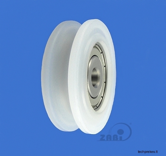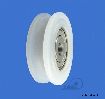 Plastikinis ratukas su guoliu, skirtas trosui, lynui, virvei
