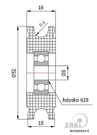 52 mm diametro plastikinis ratukas su guoliu (8 mm trosui)