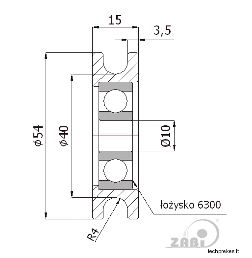 54 mm diametro metalinis ratukas su guoliu (8 mm trosui)