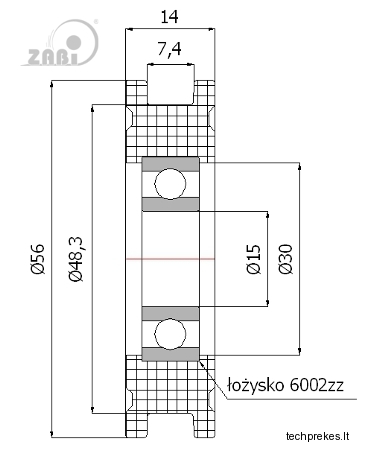 | Ratuko diametras, mm | Ašies diametras, mm | Plotis, mm | Išpjovimas, mm | Plotis per stebulę, mm | Atlaikoma apkrova, kg |