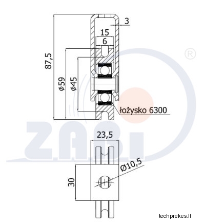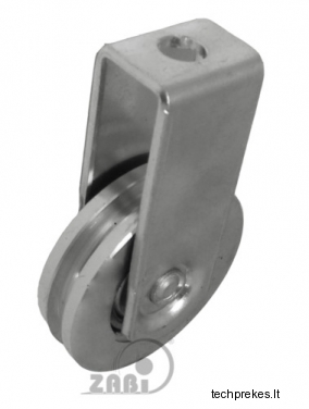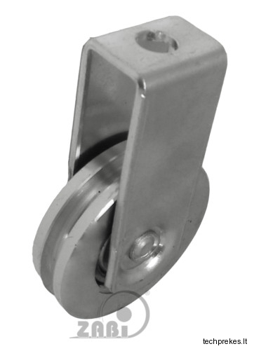 59 mm diametro metalinis ratukas su guoliu ir fiksuotu kronšteinu (6 mm trosui)
