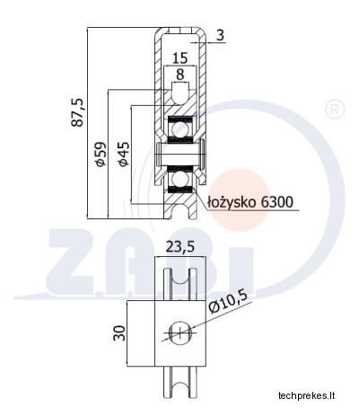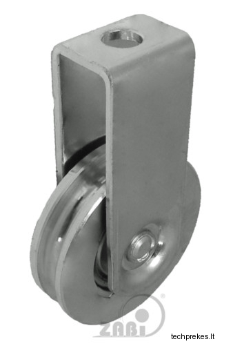 59 mm diametro metalinis ratukas su guoliu ir fiksuotu kronšteinu (8 mm trosui)