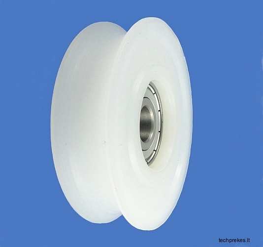 Plastikinis ratukas su guoliu, skirtas trosui, lynui, virvei