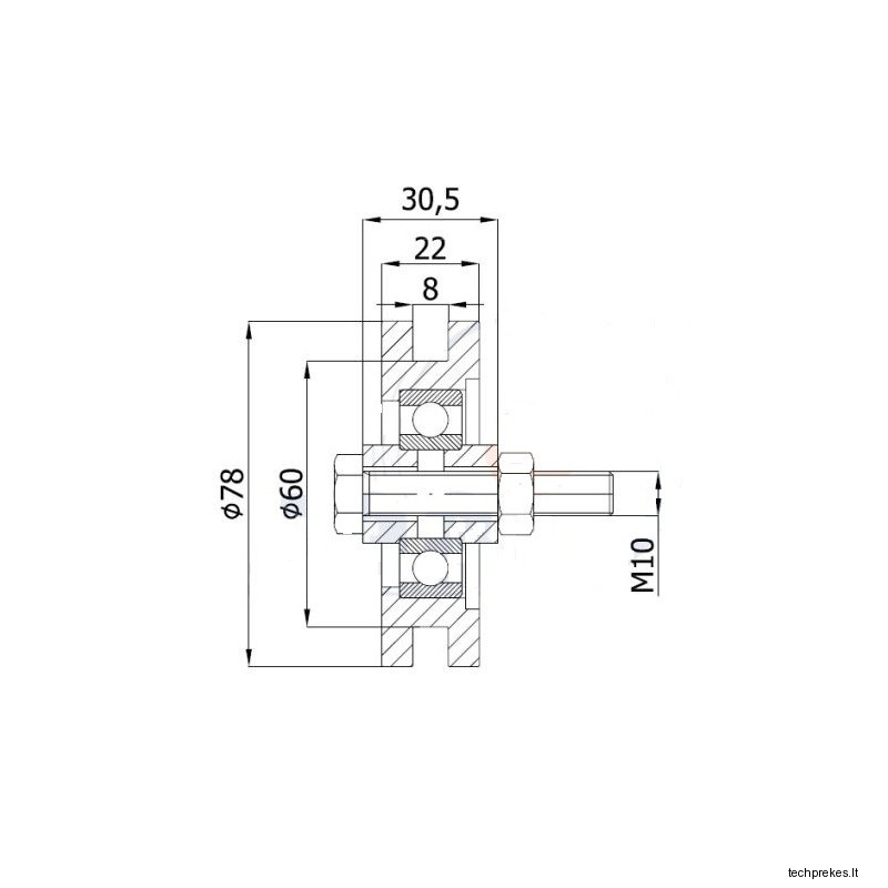 79 mm diametro metalinis ratukas su guoliu bei tvirtinimo kronšteinais