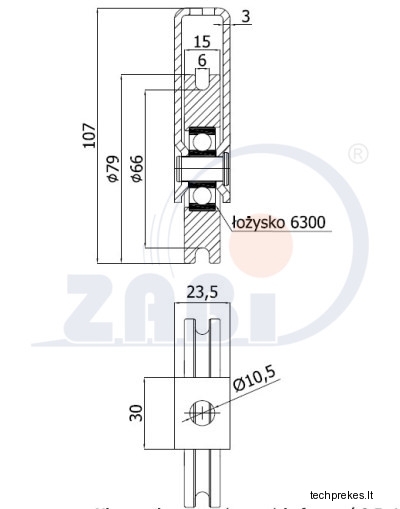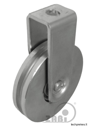 79 mm diametro metalinis ratukas su guoliu ir fiksuotu kronšteinu (6 mm trosui)