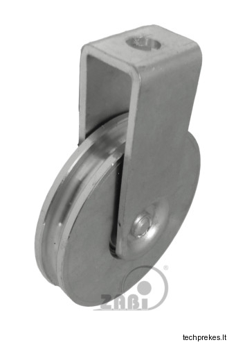 79 mm diametro metalinis ratukas su guoliu ir fiksuotu kronšteinu (8 mm trosui)