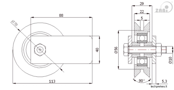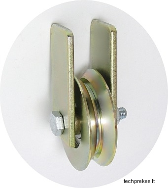Ratukas su tvirtinimo plokštelėmis bėginiams vartams, skirtas kampiniam profiliui.