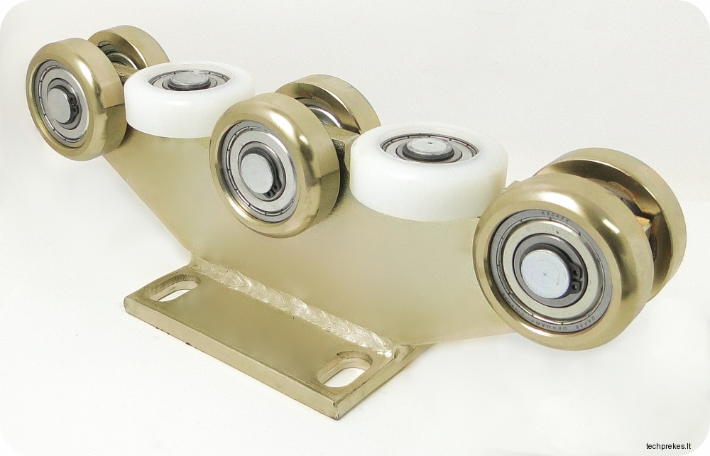 Pagrindiniai ratukai - metaliniai su guoliais, pagalbiniai -plastikinis su guoliu.