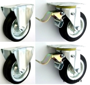 Ratukų kompletas (2 fiksuoti ir 2 pasukami su stabdžiu)