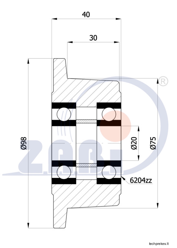 Kieto plieno ratukas 100x40 mm su flanšu (600 kg)
