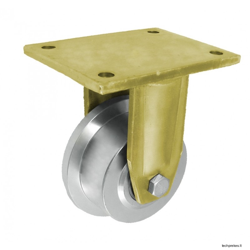 Kieto plieno ratukas 125x52 mm su flanšu ir fiksuotu kronšteinu (600 kg)