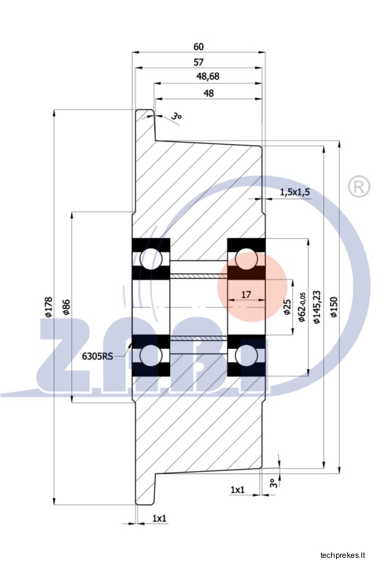 Kietojo plieno ratukas su flanšu bei fiksuotu kronšteinu.