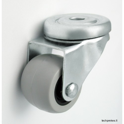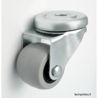 Plastikinis pagumuotas ratukas su pasukamu kronšteinu.