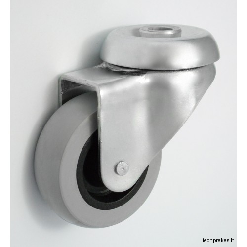 Plastikinis pagumuotas ratukas su pasukamu kronšteinu.