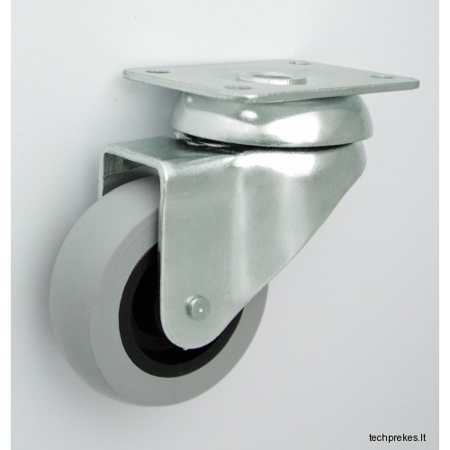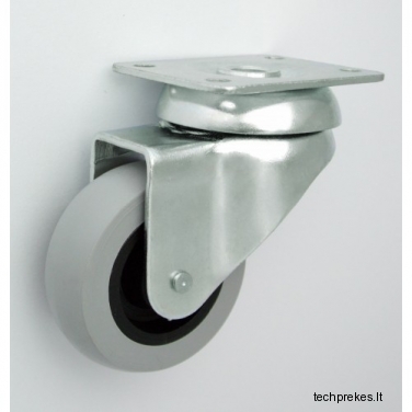 Plastikinis pagumuotas ratukas su pasukamu kronšteinu.