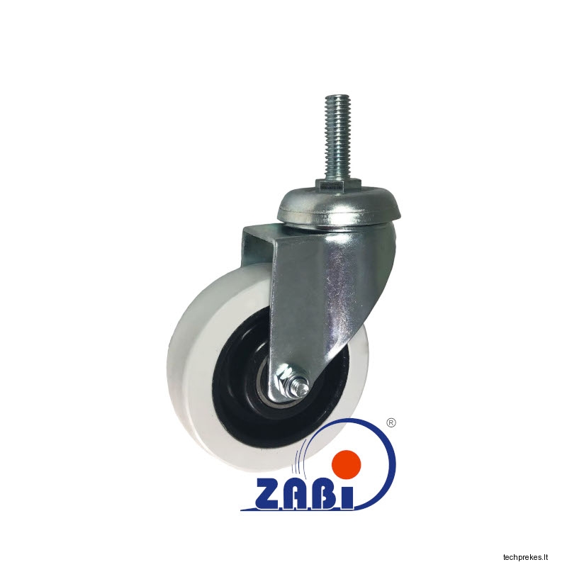 Plastikinis pagumuotas ratukas su pasukamu kronšteinu.