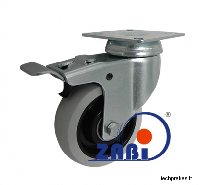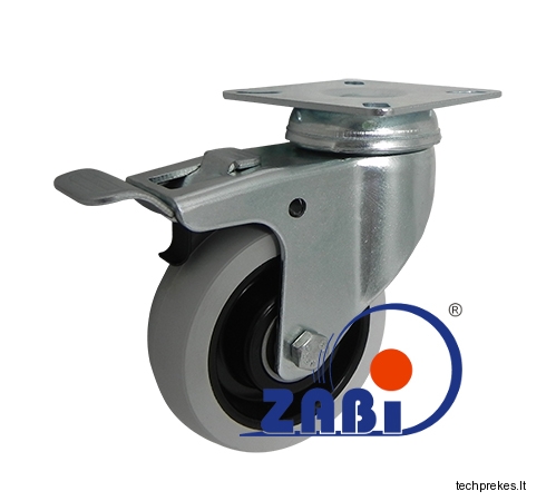 Plastikinis pagumuotas ratukas su pasukamu kronšteinu ir stabdžiu.