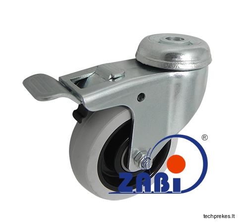 Plastikinis pagumuotas ratukas su pasukamu kronšteinu ir stabdžiu.