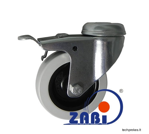 Plastikinis pagumuotas ratukas su pasukamu kronšteinu ir stabdžiu.
