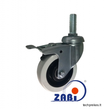 Plastikinis pagumuotas ratukas su pasukamu kronšteinu ir stabdžiu.