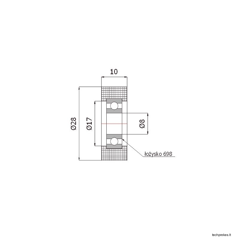 Plastikinis 28 mm diametro ratukas su guoliu (8 mm ašis)