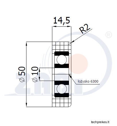 Plastikinis 50 mm diametro ratukas su guoliu (10 mm ašis)