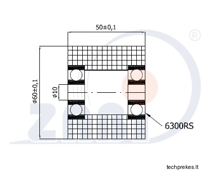 Plastikinis 60 mm diametro ratukas su dviems guoliais (10 mm ašis)