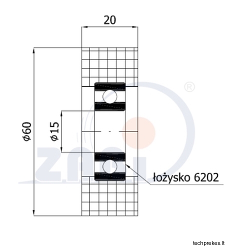 Plastikinis 60 mm diametro ratukas su guoliu (15 mm ašis)