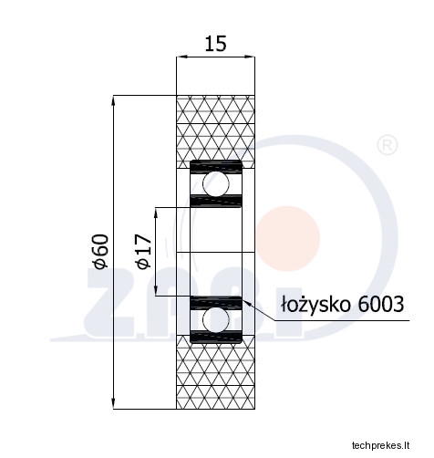 Plastikinis 60 mm diametro ratukas su guoliu (17 mm ašis)