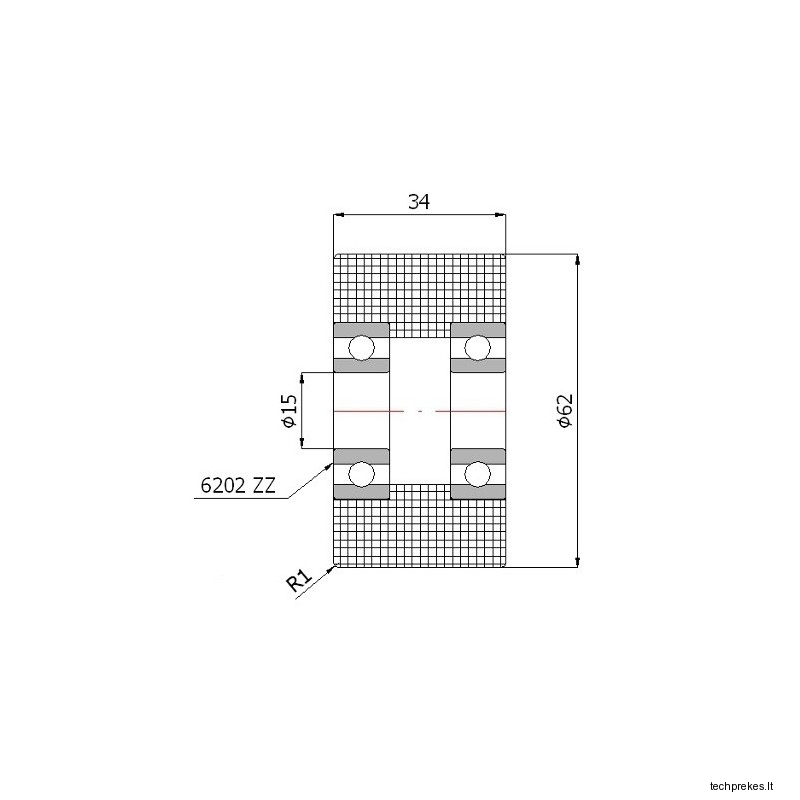 Plastikinis 62 mm diametro ratukas su dviems guoliais (15 mm ašis)