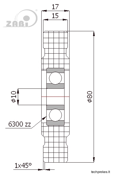 Plastikinis 80 mm diametro ratukas su guoliu (10 mm ašis)