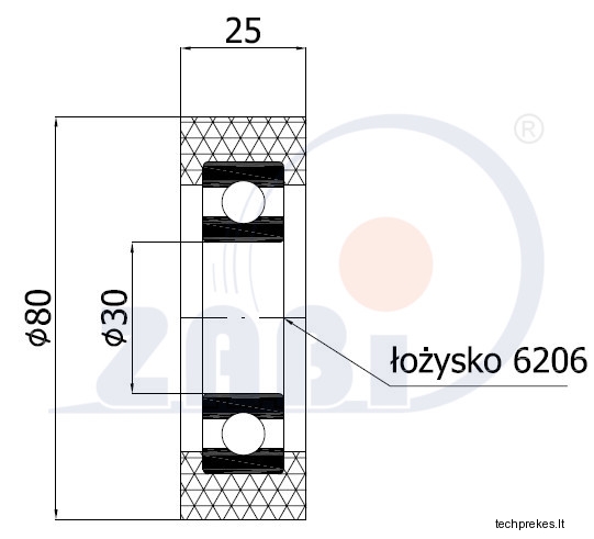 Plastikinis 80 mm diametro ratukas su guoliu (30 mm ašis)
