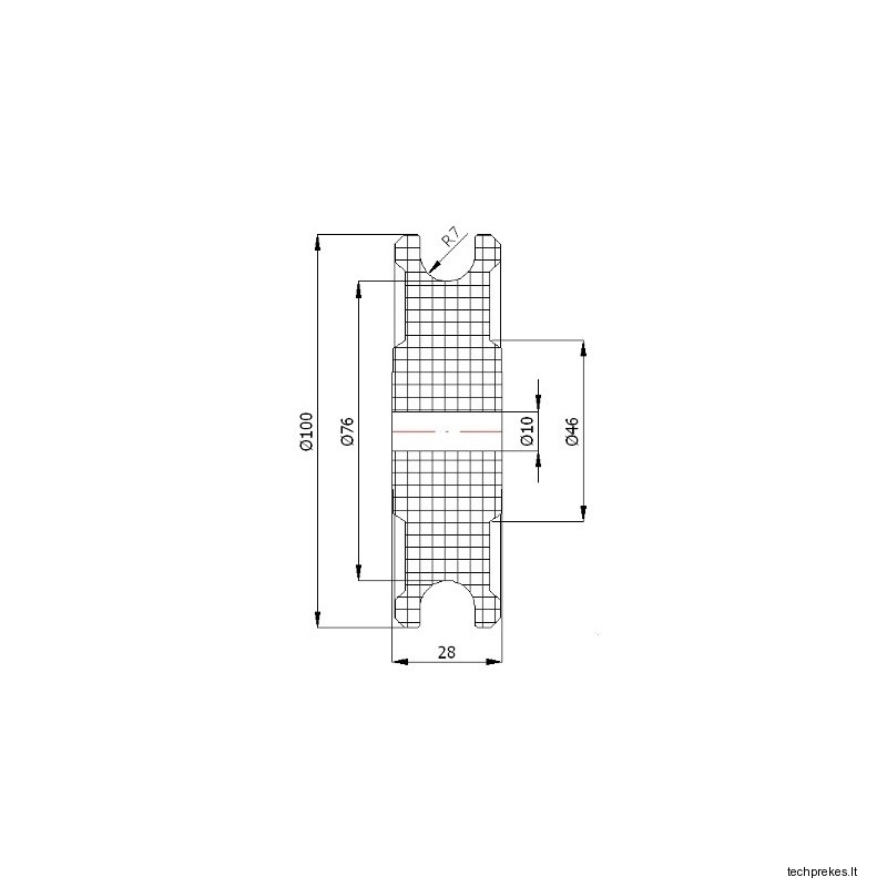 Plastikinis profiliuotas 100 mm diametro ratukas be guolio (14 mm trosui)