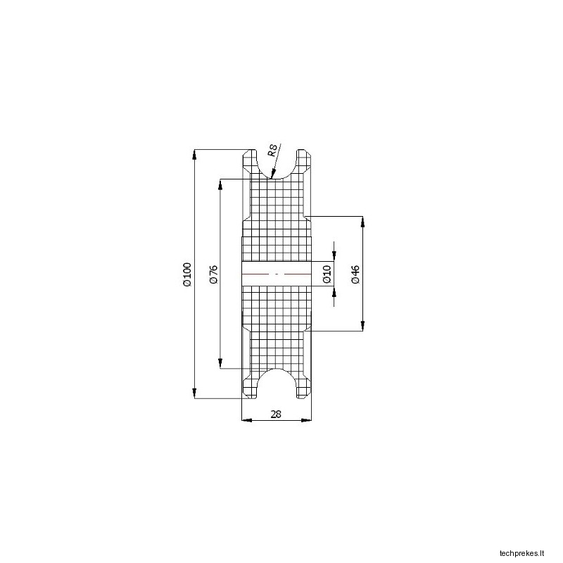 Plastikinis profiliuotas 100 mm diametro ratukas be guolio (16 mm trosui)