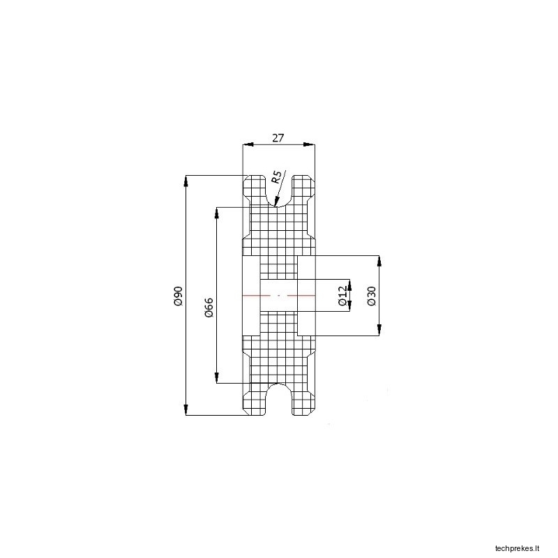 Plastikinis profiliuotas 90 mm diametro ratukas be guolio (10 mm trosui)