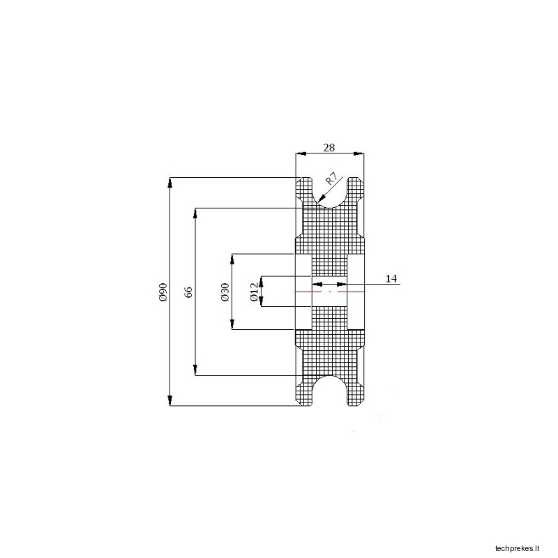 Plastikinis profiliuotas 90 mm diametro ratukas be guolio (14 mm trosui)